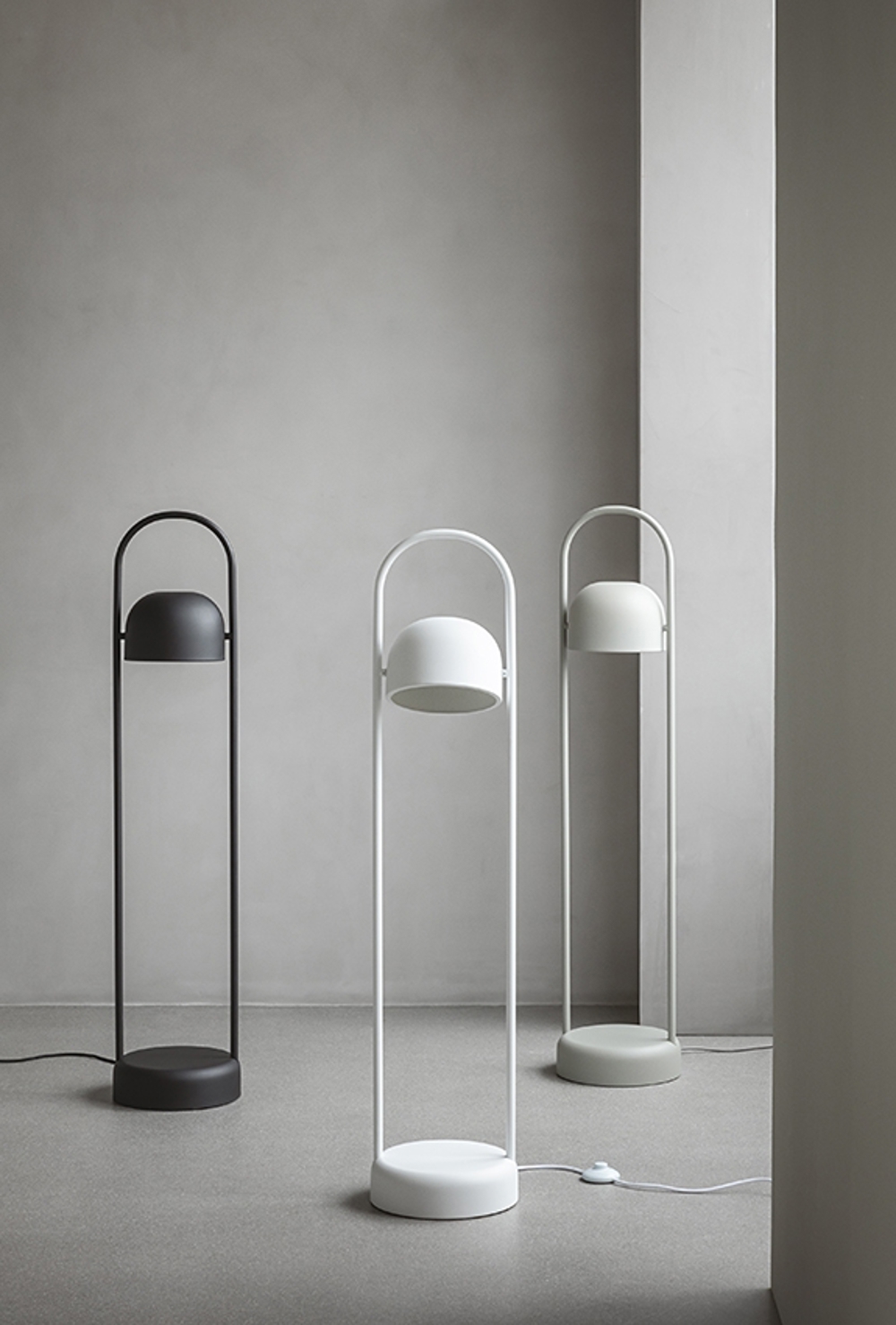 Die Quay Serie umfasst Tischlampen, Stehlampen und Pendelleuchten in zwei Größen.