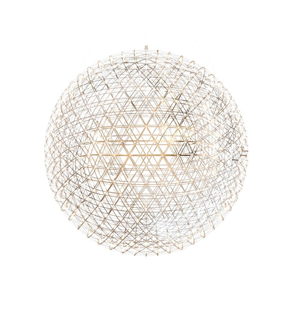 Moooi Pendelleuchte ist eine elegante Kugel, konstruiert aus filigranen Metallbändern, die den Strom zu den vielen LED-Lichtquellen leiten, die an allen Verbindungsstellen der Metallbänder platziert sind. Die hunderten Lichtquellen machen die Leuchte zu einer wunderschönen, glitzernden Lichtkugel, dennoch ist das Licht der Leuchte fein und weich und wird einen Raum nicht dominieren.