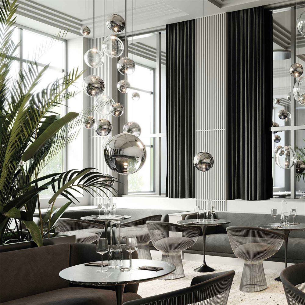 Die Lampe kann mit verschiedenen Baldachinen von LODES montiert und mit anderen Random Pendelleuchten kombiniert werden – kontaktieren Sie uns für weitere Informationen.