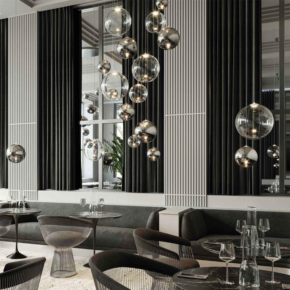 Random kann allein schön hängen, kann aber auch mit mehreren kombiniert werden, um einen spektakulären Effekt im Raum zu erzielen.