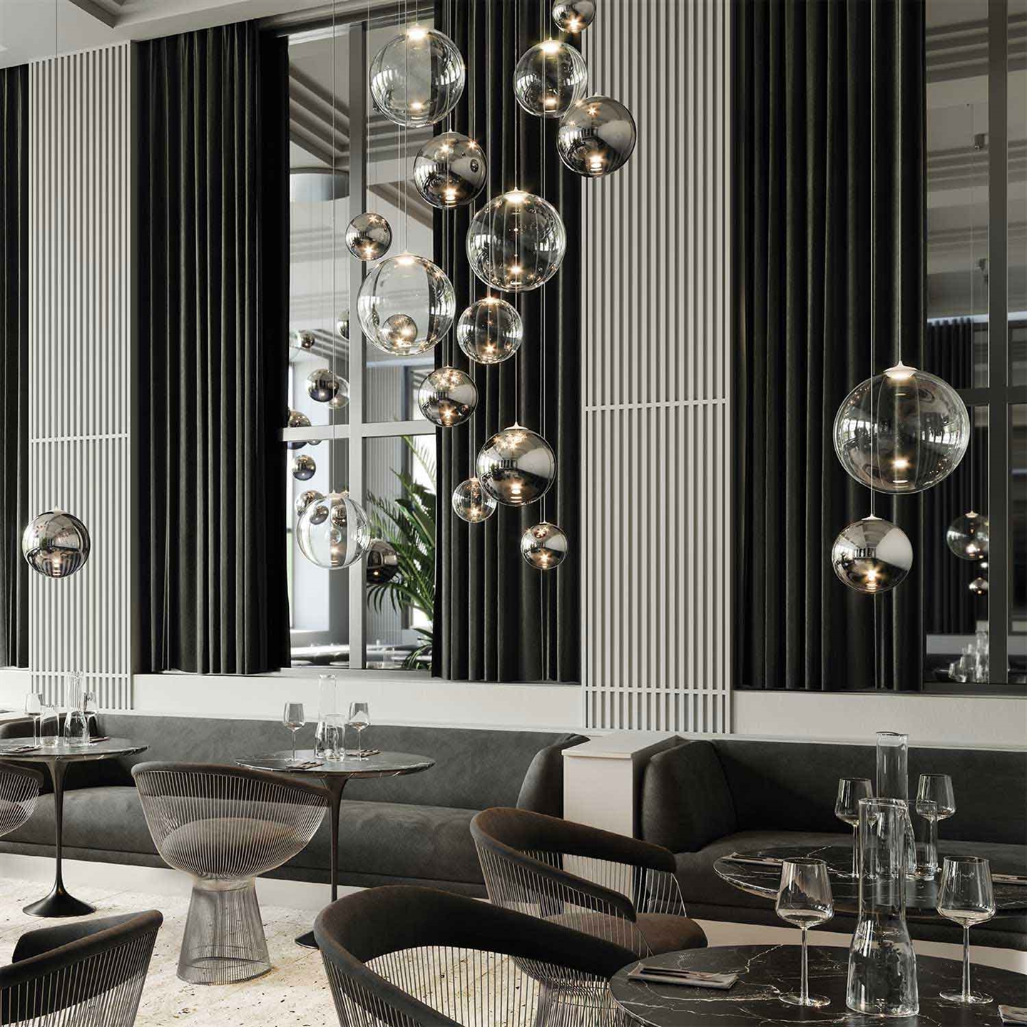 Random kann alleine schön hängen, kann aber auch mit mehreren kombiniert werden, um einen spektakulären Effekt im Raum zu erzielen.