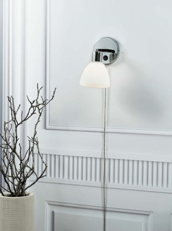Die Ray Wandleuchte ist in einem klassischen und eleganten Design gestaltet, bei dem die Kombination aus Chrom und dem weißen Glasschirm einen stilvollen Look erzeugt. Die mundgeblasenen Glasschirme verbreiten ein weiches und angenehmes Licht, das in viele Räume passt – ob Sie eine dezente Stimmungsbeleuchtung in einer Ecke oder eine praktische Leselampe neben dem Sessel, Bett oder im Jugendzimmer wünschen.