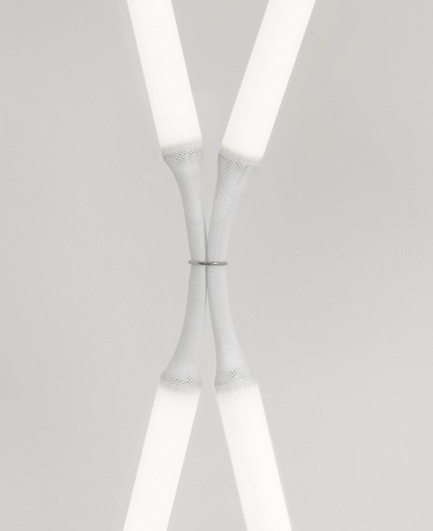 Die Reb Lampe ist mit fünf oder acht LED-Modulen erhältlich und ist eine unkonventionelle Pendelleuchte, die wie ein leuchtendes Seil von der Decke hängt. Die flexible Lampe kann allein oder in Gruppen als skulpturales Element im Raum arrangiert oder nebeneinander als Raumteiler oder Lichtvorhang platziert werden.