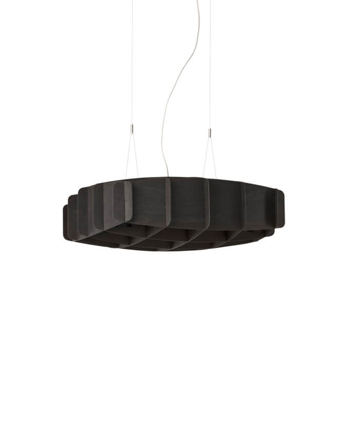 Die Lampe besteht aus nachhaltig zertifiziertem Birkenfurnier, das in Finnland handgefertigt und ohne Schrauben oder Klebstoff montiert wird.