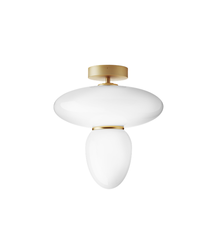 Nuura Rizzatto 42 Deckenleuchte, satin brass/opal – entworfen von Paolo Rizzatto.