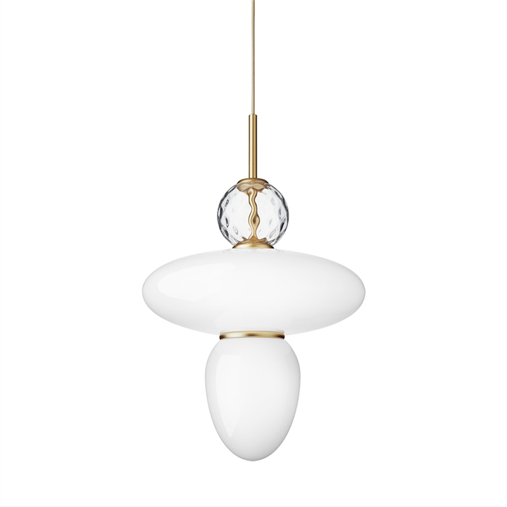 Nuura Rizzatto 43 Pendelleuchte, Satin Brass/Opal – entworfen von Paolo Rizzatto.