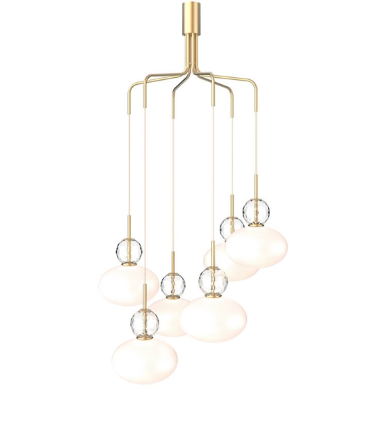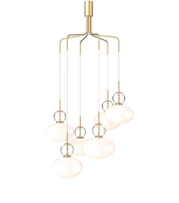 Rizzatto Cluster 6 Pendelleuchte, Satin Messing/Opal