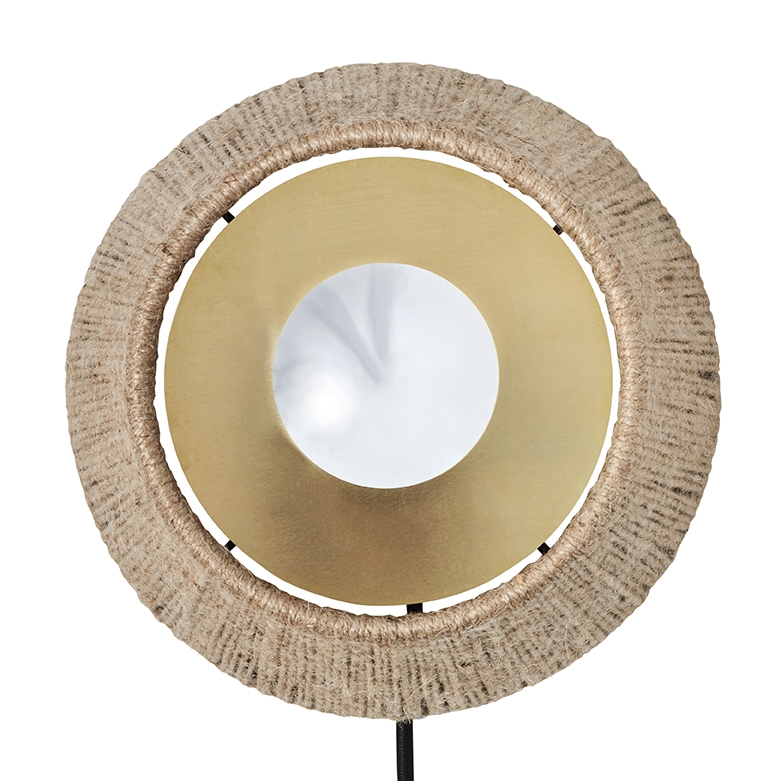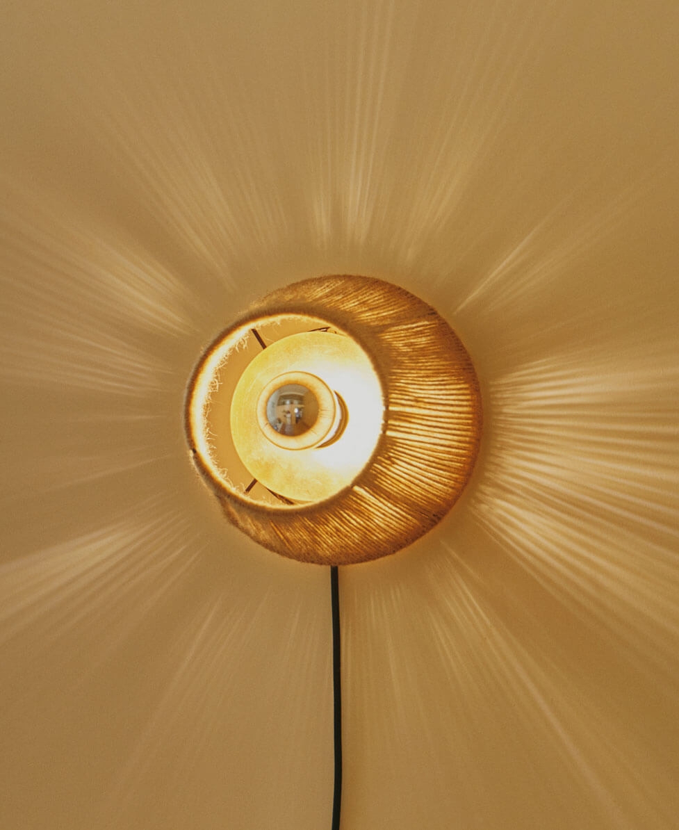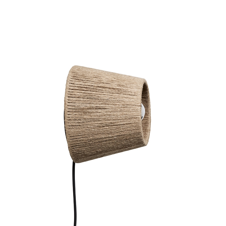Die Wandleuchte Ro besteht aus starkem und haltbarem Jutegarn, das um einen Eisenrahmen gewickelt ist. Die Inspiration stammt aus der traditionellen dänischen Handwerkstechnik der 1920er und 1930er Jahre, bei der einfache Lampenschirme durch das Wickeln von Garn um einen Holzrahmen hergestellt wurden. Die Wandleuchten der Lampenserie sind in mehreren Varianten erhältlich und eignen sich gut für den Flur, das Schlafzimmer oder das Wohnzimmer.