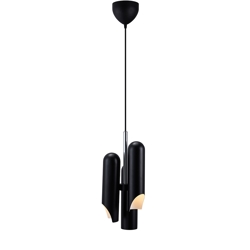 Die Rochelle-Serie wurde von der dänischen Designerin Charlotte Høncke entworfen. Die Pendelleuchte hat eine moderne italienische Formensprache, die aus drei schlanken, skulpturalen Lampenköpfen besteht. Die matte schwarze Oberfläche der Pendelleuchte und die Chromdetails harmonieren perfekt und verleihen ein stilvolles Aussehen.