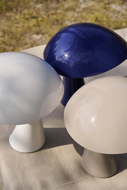 Rumee Portable hat eine Hochglanzoberfläche und ist in drei Farben erhältlich, inspiriert von der nordischen Natur. Die weichen neutralen Farben Cloud White und Earth Grey passen gut zu vielen Einrichtungsstilen, während die Night Blue-Variante gewählt werden kann, wenn eine Lampe gewünscht wird, die mehr auffällt.