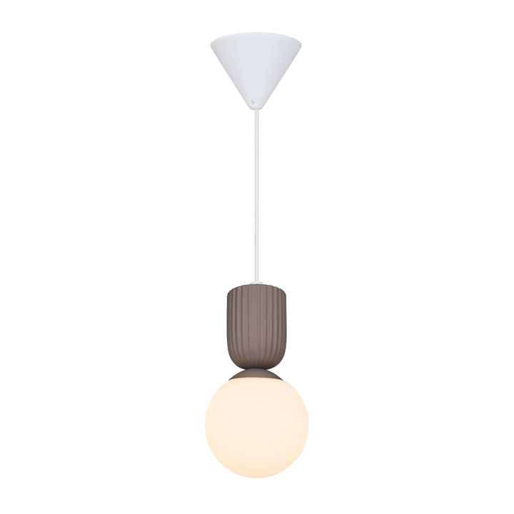 Die Pendelleuchte Sadie hat einen schönen Ausdruck mit einer Mischung aus Opalglas und geriffelter Keramik. Die Lampe liefert ein angenehmes und blendfreies Licht aus der mundgeblasenen Kuppel aus Opalglas, die durch die manuelle Herstellung Charakter und ihr lebendiges Aussehen erhält und im Ausdruck und in der Dicke variieren kann.