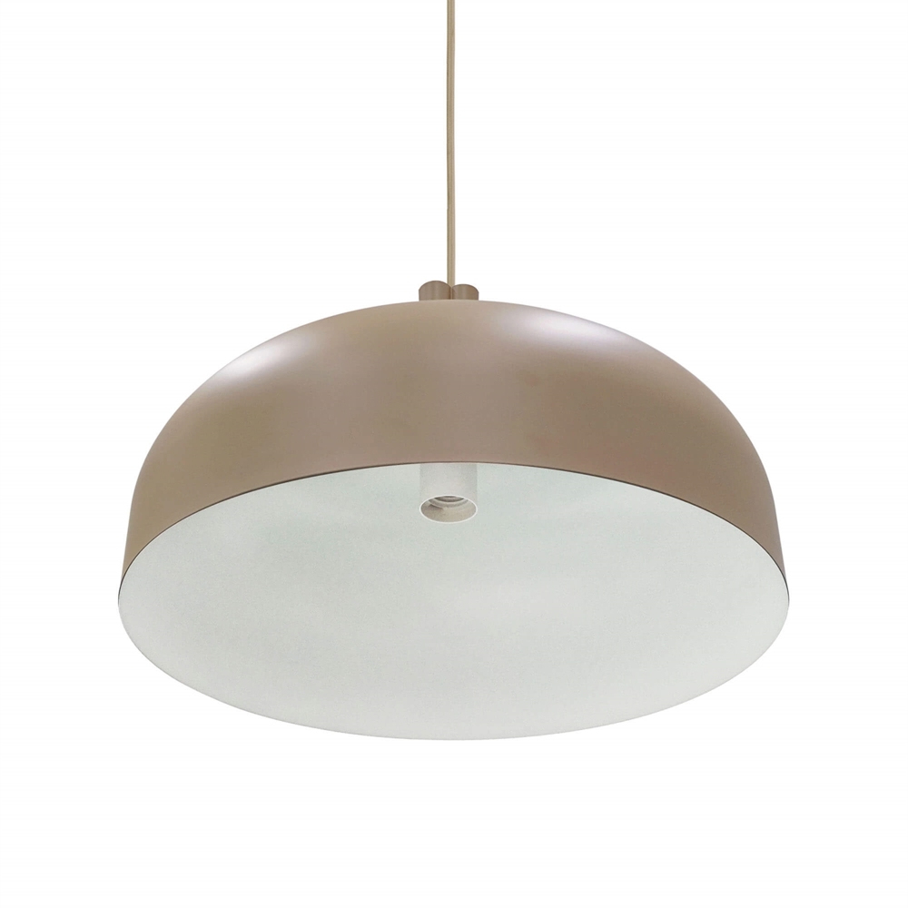 Der stilreine Schirm hat oben ein Metalldetail als moderne und dezente Ergänzung zum minimalistischen Ausdruck der Pendelleuchte.