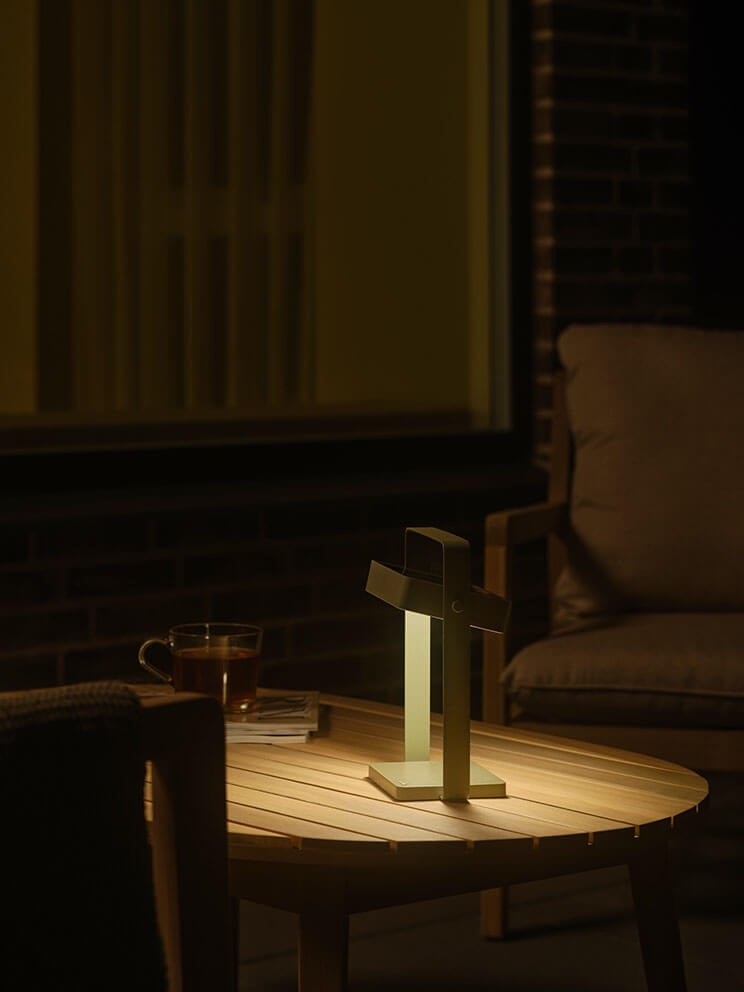 Die Batterielampe Saulio Solar ist solarbetrieben und dänisches Design, perfekt für Außenbereiche wie Terrasse oder Balkon. Die Tischlampe ist leicht mitzunehmen und in drei Stufen mit Moodmaker™ dimmbar, sodass die Lichtstärke an die gewünschte Stimmung angepasst werden kann. Der schwenkbare Lampenkopf kann um 360° gedreht werden und ermöglicht es, die Lichtausrichtung zu justieren.