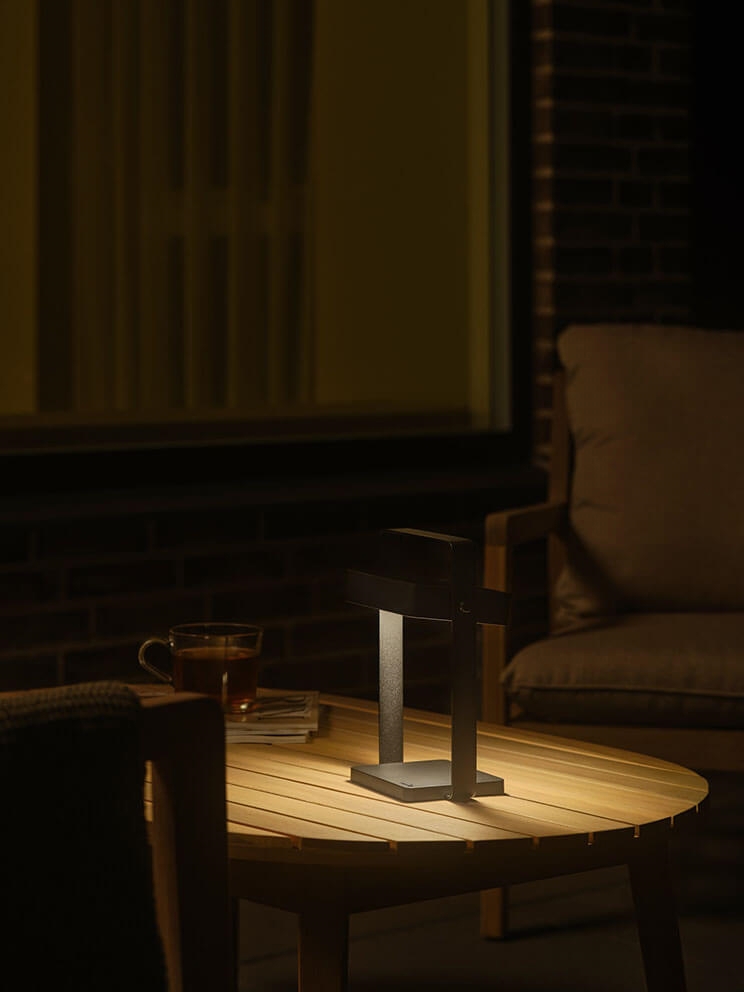 Saulio Solar ist als Außenwandleuchte, Gartenleuchte oder Tischlampe erhältlich.