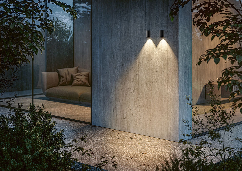 Die Wandleuchte aus Druckguss-Aluminium ist schwarz pulverbeschichtet (RAL 9005) und kann anspruchsvollen Außenbedingungen standhalten. Eine elegante und funktionale Außenleuchte, die jahrelang zuverlässige Beleuchtung gewährleistet.
