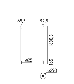 Maße: H185,4 x B9,3 x T6,6 cm, Basis: Ø29 cm