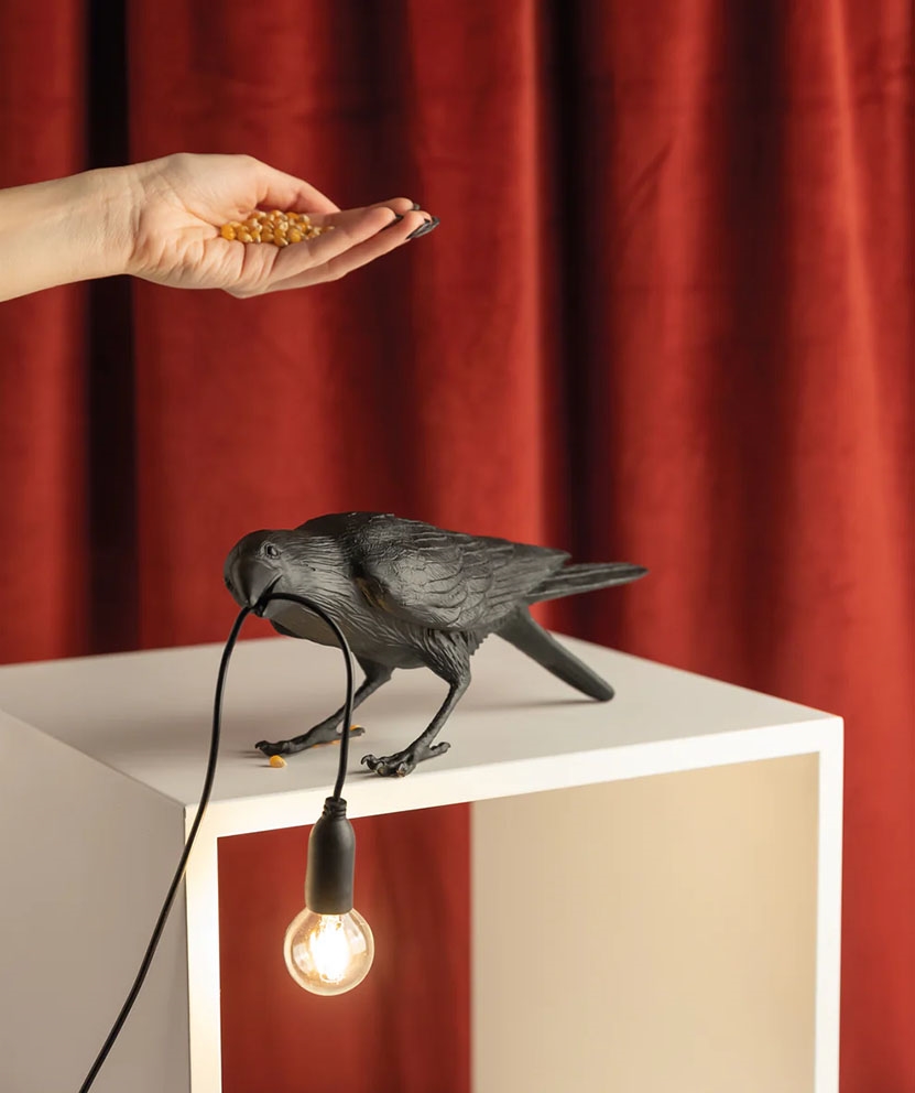 Seletti Bird Playing Tischleuchte, schwarz - entworfen von Marcantonio