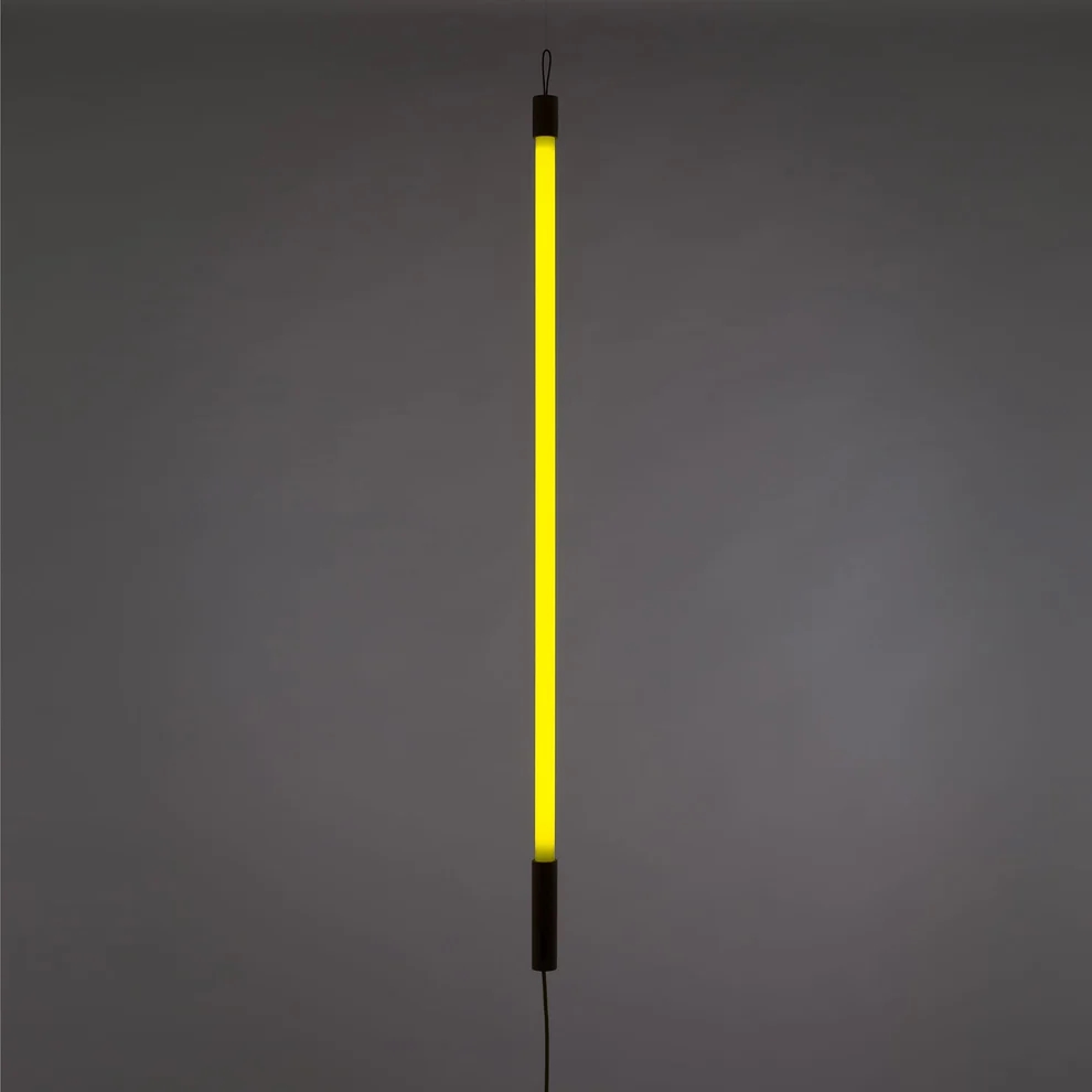 Die Leuchtröhre Linea von Seletti schneidet durch die Dunkelheit und ist in mehreren schönen Farben erhältlich. Die Länge der Lampe ist klar definiert, während ihre Persönlichkeit unendlich ist. Kann als Pendelleuchte und Wandleuchte oder als Stehleuchte verwendet werden - liegend auf dem Boden oder aufrecht stehend in einem Seletti Holzsockel, der dafür entworfen wurde. Der Holzsockel muss separat gekauft werden.