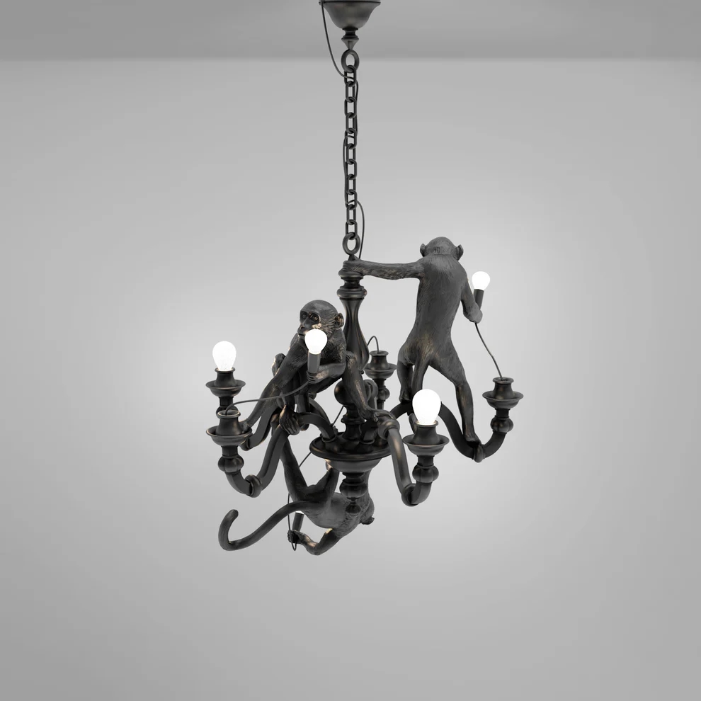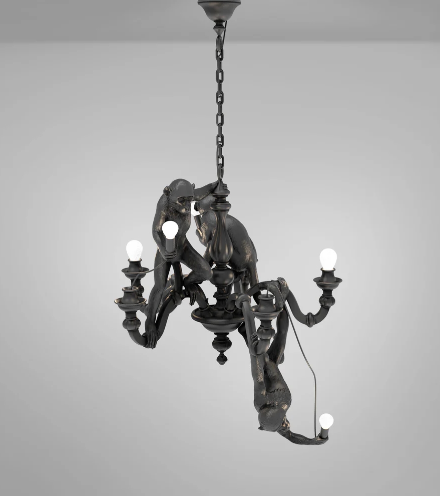 Seletti Monkey Kronleuchter, schwarz – entworfen von Marcantonio im Jahr 2019