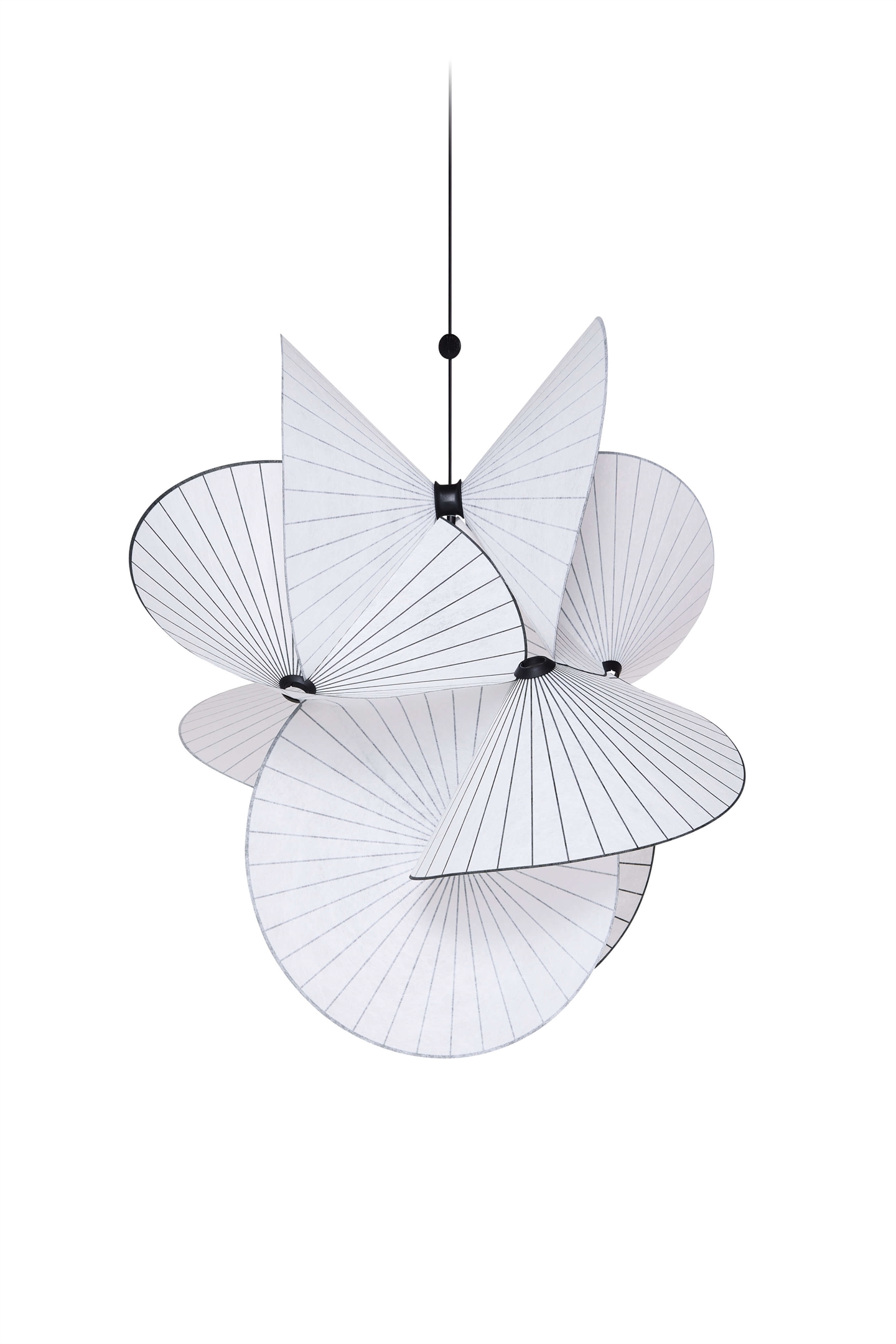 Die dunklen Linien in den Schirmen erzeugen den Effekt einer endlosen aufsteigenden Spirale, und der fast durchscheinende Materialfluss und die Kurven verteilen das Licht gleichmäßig. Das starke Design und die Illusion ewiger Bewegung machen Serpentine Light zur perfekten Lampe, um über Ihrem Esstisch, in Ihrem Flur oder über Ihrem Schreibtisch im Büro zu hängen.
