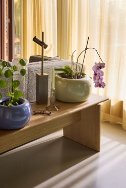 Die Set-Serie besteht aus einer hohen Stehleuchte und zwei Varianten dieser Tischleuchte. Mit ihren ruhigen Silhouetten und klaren Materialien passen die Leuchten perfekt in moderne skandinavische Einrichtungen.