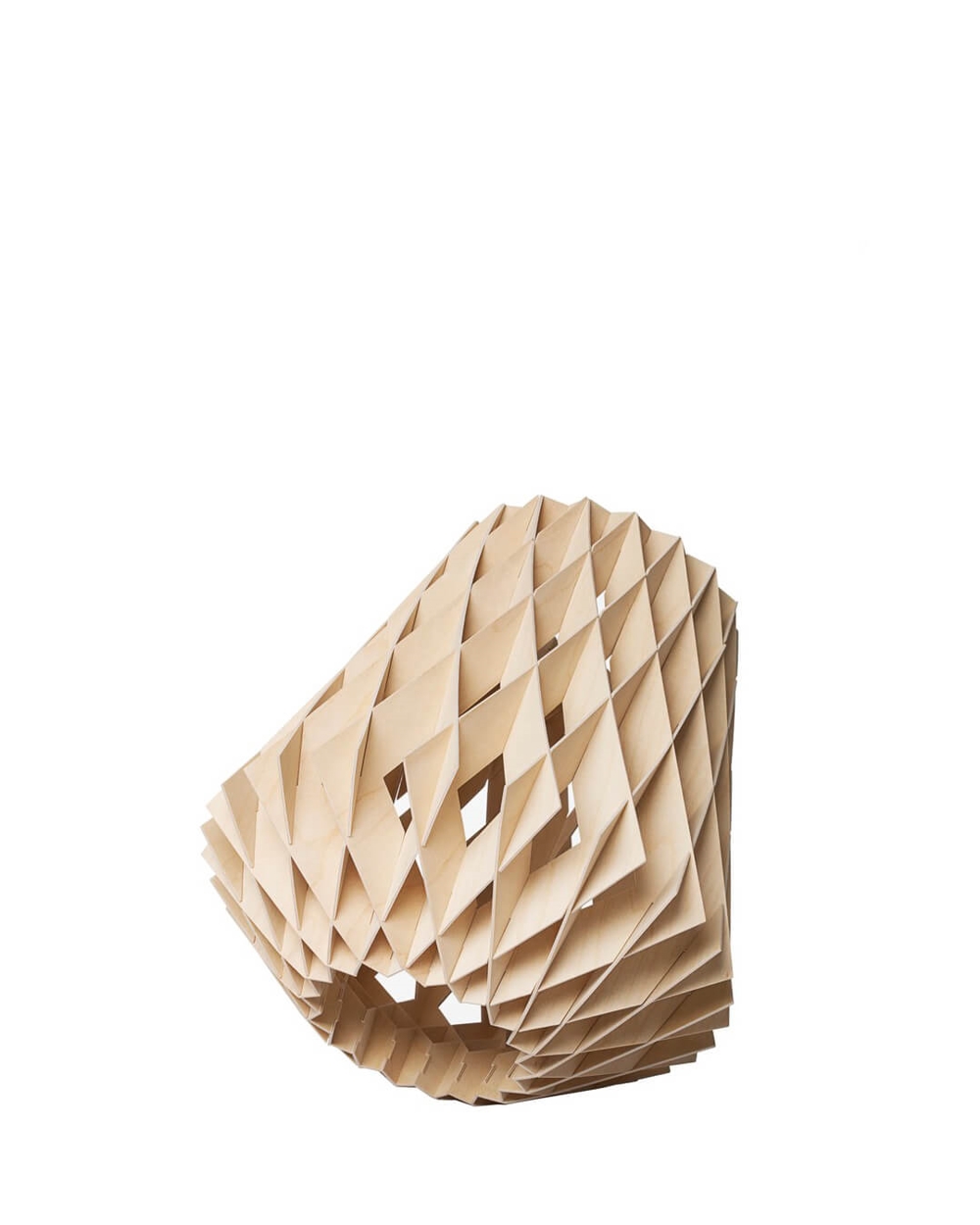 Diese einzigartige Tischlampe kann sowohl aufrecht stehen als auch geneigt auf dem Tisch platziert werden und passt in viele Einrichtungsstile. Die Lampe besteht aus einem Schirm aus nachhaltig zertifiziertem Birkenfurnier, der handgefertigt ist. Die Birkenlamellen erzeugen eine Wärme, wenn das Licht hindurchscheint, und sind ohne Schrauben oder Kleber zusammengefügt. Darüber hinaus hat die Lampe ein stilvolles und geometrisches Design, das in jedem Raum zum Blickfang wird.