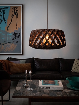 Die gesamte Signature-Serie besteht aus auffälligen Pendelleuchten, die mit ihren Schirmen ein einzigartiges Schattenspiel durch die Struktur erzeugen. Die Signature-Serie ist in einer Reihe von Modellen und verschiedenen Größen in den Farben Birke, Weiß, Schwarz und Braun erhältlich.