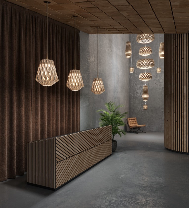 Die Signature-Serie umfasst auffällige Pendelleuchten, die mit ihren Schirmen ein einzigartiges Schattenspiel durch die Struktur erzeugen. Die Signature-Serie ist in verschiedenen Modellen und Größen in den Farben Birke, Weiß und Schwarz erhältlich.