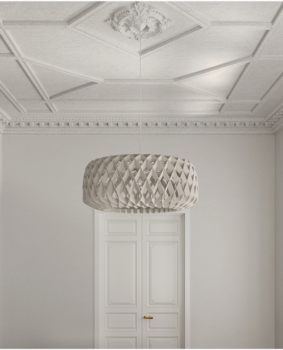 Die gesamte Signature-Serie besteht aus auffälligen Pendelleuchten, die mit ihren Schirmen ein einzigartiges Schattenspiel durch die Struktur erzeugen. Die Signature-Serie ist in einer Reihe von Modellen und verschiedenen Größen in den Farben Birke, Weiß und Schwarz erhältlich.