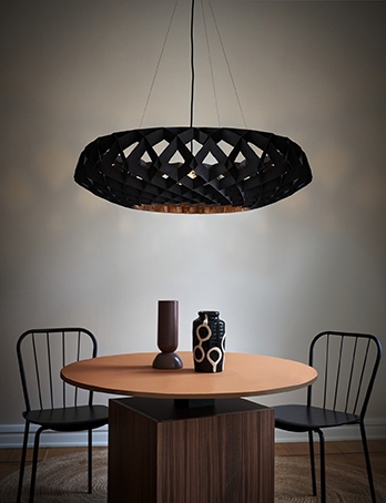Die Signature-Serie besteht aus auffälligen Pendelleuchten, die mit ihren Schirmen ein einzigartiges Schattenspiel durch die Struktur erzeugen. Die Signature-Serie ist in einer Reihe von Modellen und verschiedenen Größen in den Farben Birke, Weiß und Schwarz erhältlich.