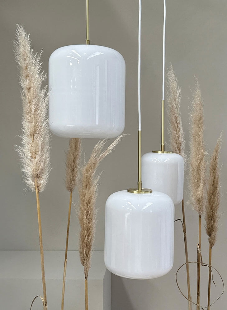 Silvia D20 Pendelleuchte aus mundgeblasenem Opalglas mit Messingaufhängung vereint mit ihrem schönen Design das Moderne und Klassische. Der Schirm aus glänzendem Opalglas strahlt ein blendfreies Licht in alle Richtungen und sorgt für eine angenehme Beleuchtung. Die Pendelleuchte eignet sich perfekt über dem Küchentisch, als Lampe am Nachttisch im Schlafzimmer oder allein oder in Gruppen im Wohnzimmer.