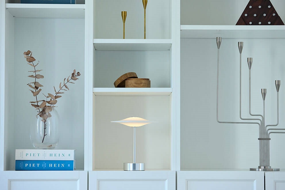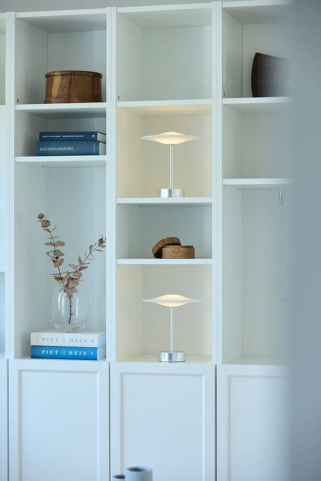 Die Lampenserie Sinus ist von der Sinuskurve inspiriert, die eine harmonische mathematische Form hat. Die ursprüngliche Sinus Pendelleuchte wurde 1967 geschaffen, und das elegante Design verkörpert den bekannten klaren skandinavischen Ausdruck dieser Zeit. Mit der Tischlampe Sinus Portable mit Stahl-Finish, die 2025 eingeführt wurde, ist eine schöne wiederaufladbare Tischlampe entstanden, die auf dem ursprünglichen raffinierten Design basiert.
