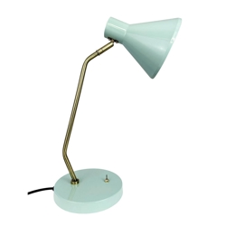 Die Sleep Tischlampe hat ein minimalistisches Design und eignet sich perfekt als Lampe auf dem Nachttisch im Schlafzimmer, dem Schreibtisch im Büro oder einem Regal im Wohnzimmer. Die Tischlampe strahlt schlichte Eleganz aus mit einem Knick im Messingstab und einem neigbaren Schirm. Die Lampe wird mit einem Schalter an der Basis ein- und ausgeschaltet.