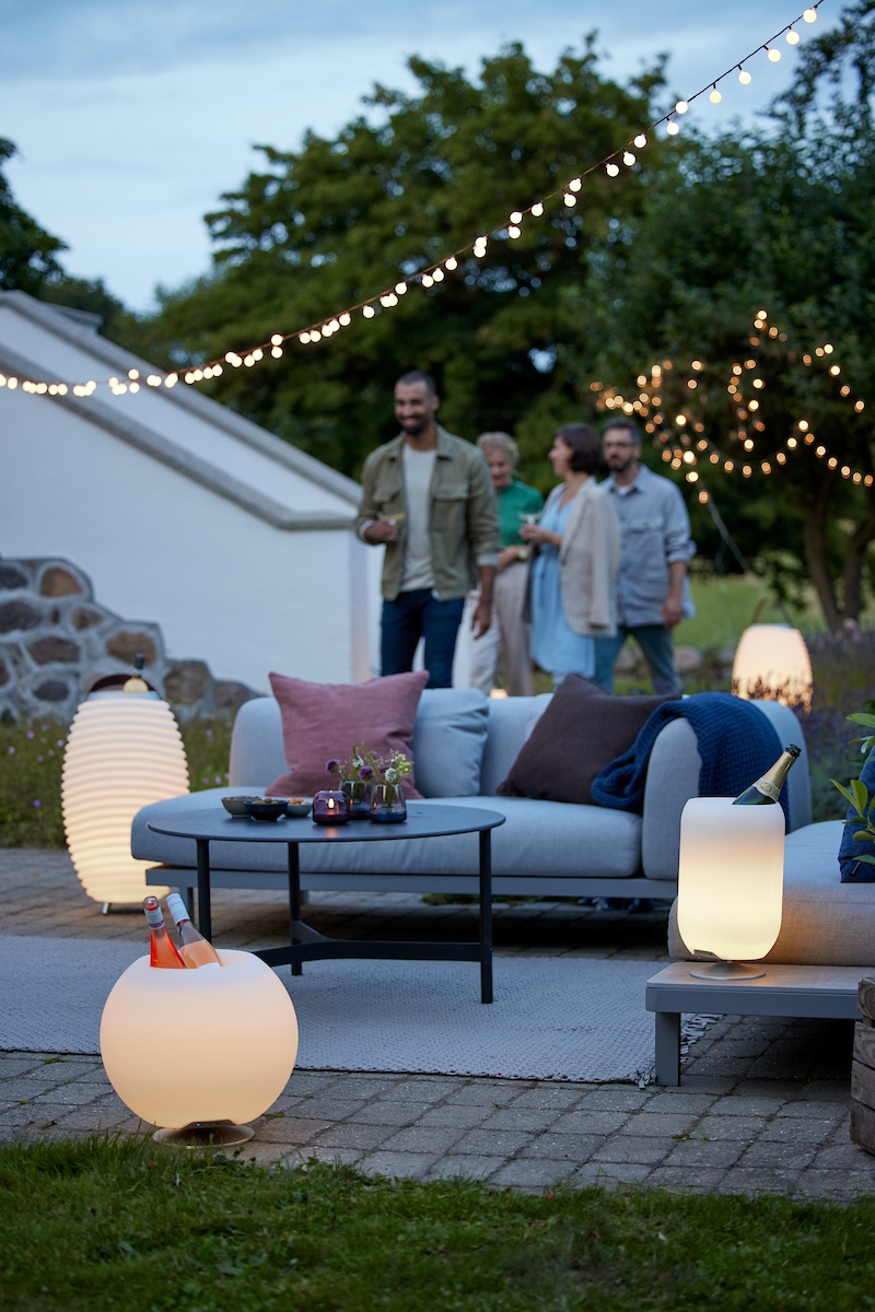 Kooduu Sphere ist eine innovative Kombination aus LED-Lampe, kabellosem Lautsprecher und Getränkekühler. Die Lampe hat ein unglaublich smartes Design, das überallhin mitgenommen werden kann, da sie batteriebetrieben ist. Die Lampe wird über einen USB-C-Anschluss in 3,5 Stunden aufgeladen.