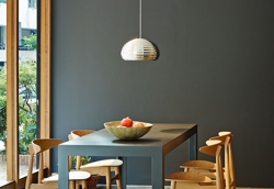 Die Pendelleuchte macht sich gut über dem Esstisch und verleiht ihm ein schönes Aussehen. Für mehr Fülle im Raum können mehrere nebeneinander aufgehängt werden.