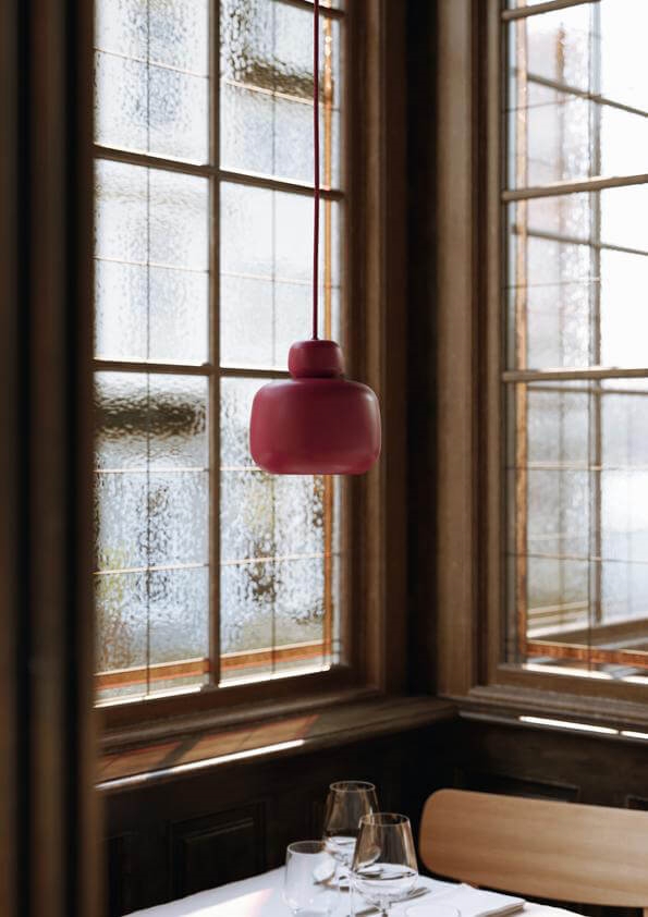 Woud Stone Pendelleuchte klein, deep red – entworfen von Philip Bro