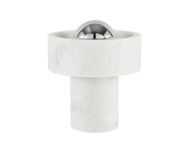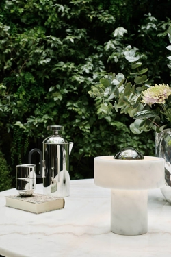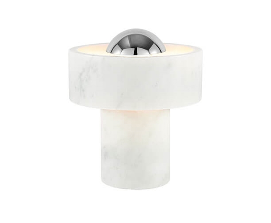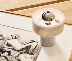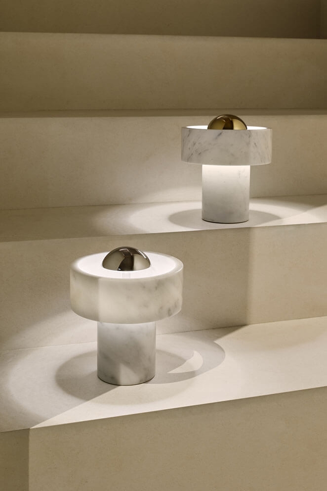 Die Batterielampe Stone Portable ist eine wiederaufladbare Lampe mit einem Sockel aus Marmor, einem Material, das Designer seit Jahrtausenden fasziniert. Das Markenzeichen der Lampe ist ein massiver äußerer Marmor-Ring, der um die Lichtquelle zu schweben scheint und einen Heiligenschein-Effekt erzeugt.