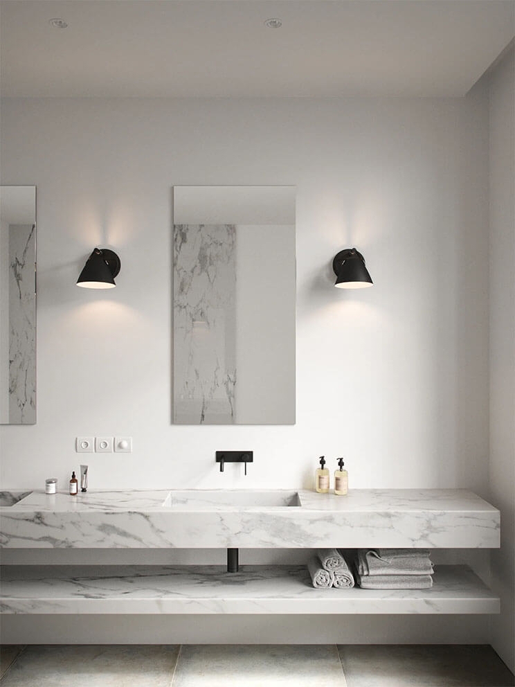 Die Wandleuchte wird mit zwei hochwertigen Lederriemen geliefert – einem schwarzen und einem naturfarbenen – sodass Sie die Lampe nach Ihren Wünschen anpassen können. Sie kann um 90° gekippt und um 350° gedreht werden.