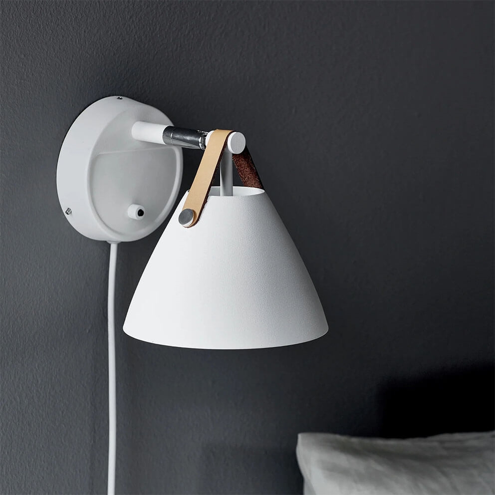 Die Wandleuchte Strap kombiniert Metall und Leder in einem modernen nordischen Stil. Die Strap-Serie verdankt ihren Namen den auffälligen Riemen, die der Lampe Wärme und etwas Raues verleihen. Das Design balanciert zwischen einem klassischen und einem industriellen Ausdruck.