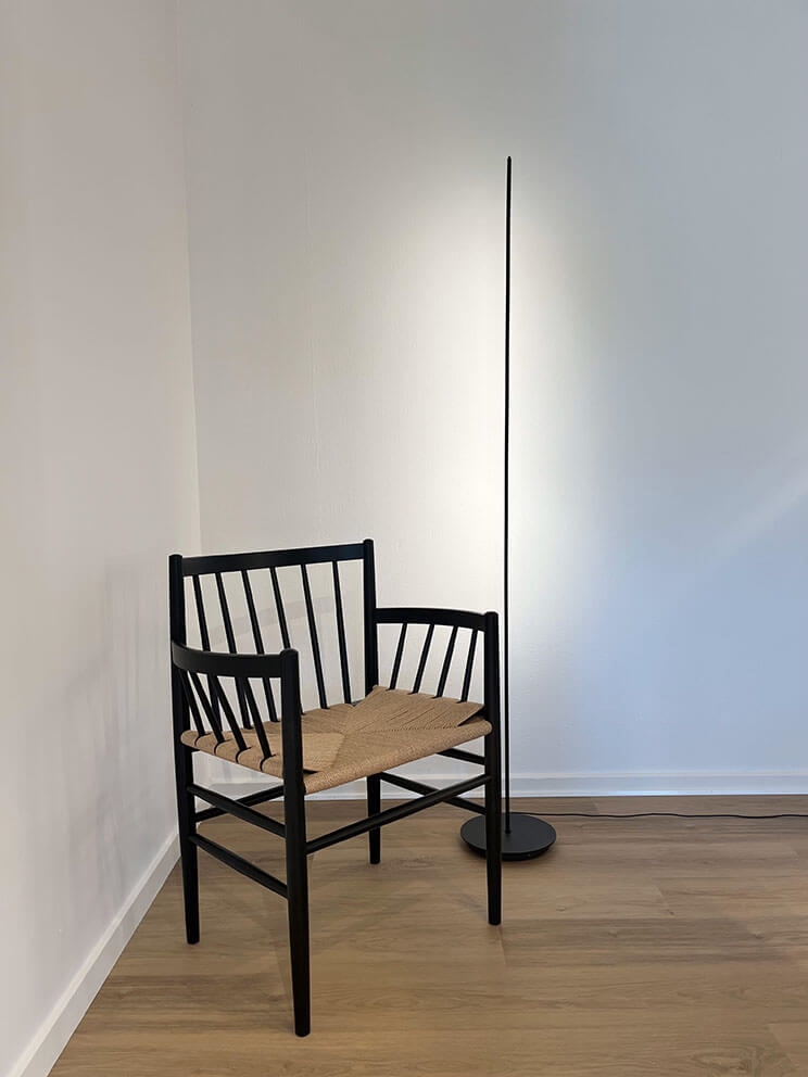 Die Stehlampe String hat ein schlankes und platzsparendes Design mit einer integrierten LED-Beleuchtung an der Seite der Lampe. Das Licht wird über einen Schalter oben mit stufenloser Dimmung ein- und ausgeschaltet, sodass Sie die Helligkeit selbst bestimmen können. Verwenden Sie String beispielsweise, um ein Möbelstück oder eine Ecke des Raumes zu beleuchten oder als dekoratives Licht im Wohnzimmer, Schlafzimmer oder Büro, wo sich der minimalistische Ausdruck der Stehlampe gut in viele Einrichtungsstile einfügt.