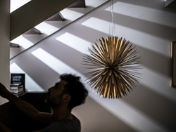 Die Sun Light of Love Pendelleuchte ist in Weiß und Mattgold erhältlich.