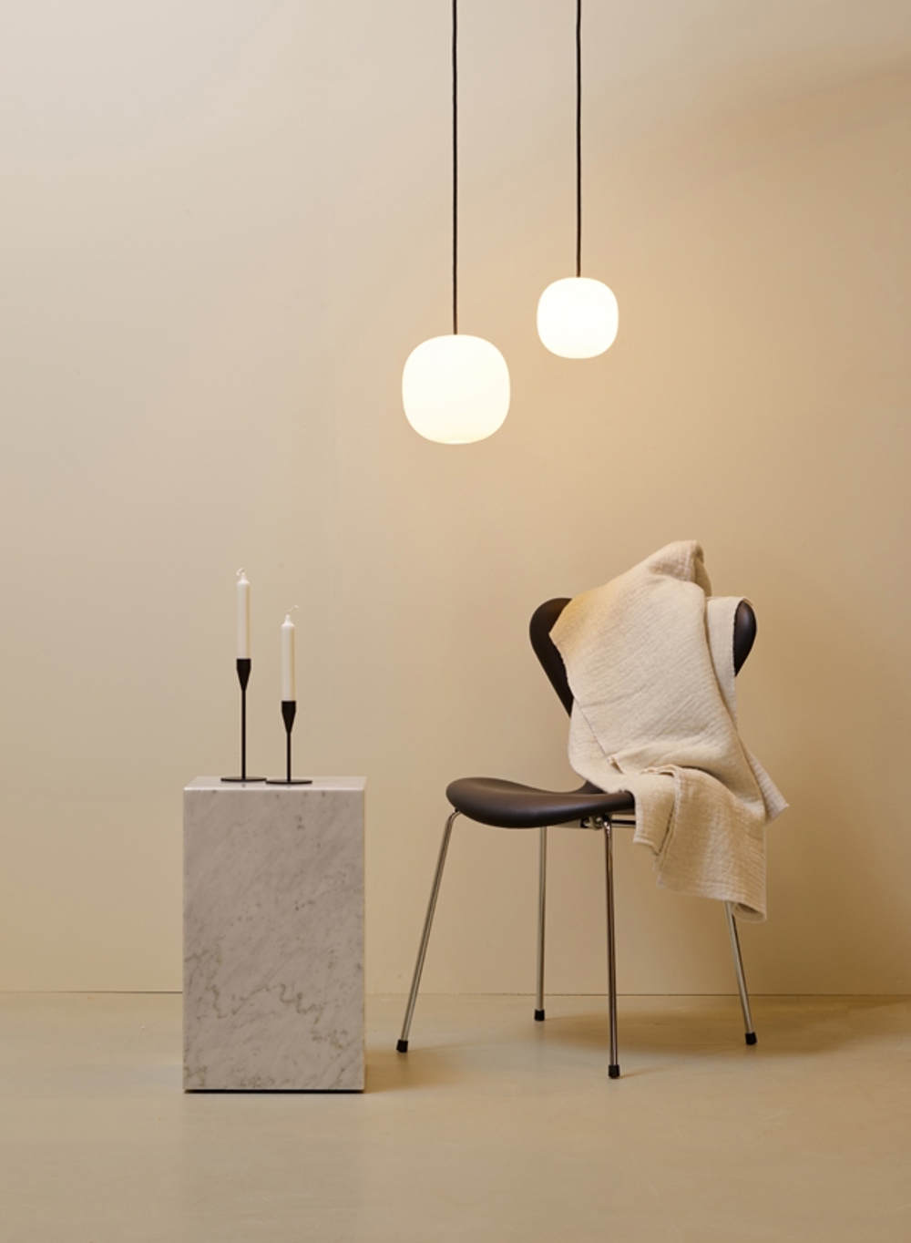 Die Superkube Pendelleuchte ist eine Weiterentwicklung der Superæg Pendelleuchte, bei der diese eine weniger ovale Form hat.