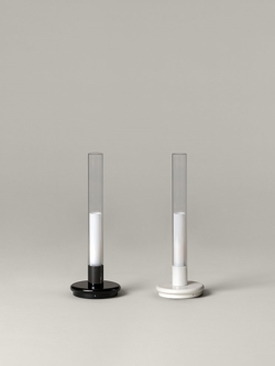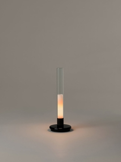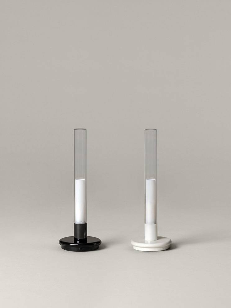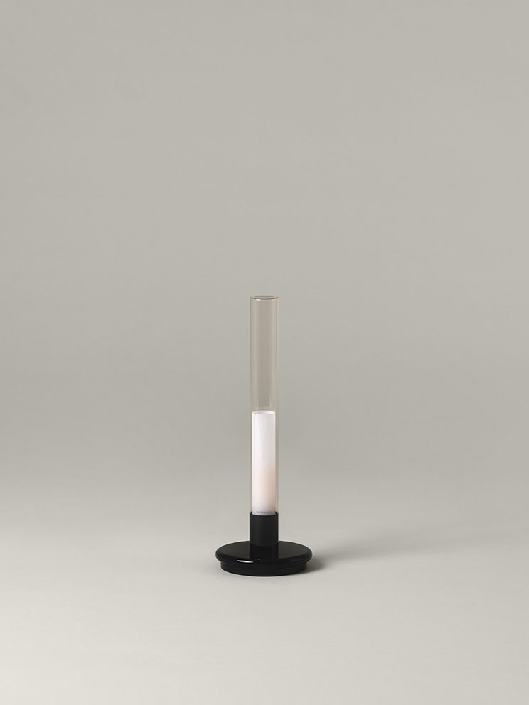 Santa & Cole Sylvestrina Akkulampe/Tischlampe, glänzend schwarz – entworfen von Enric Sòria und Jordi Garcés