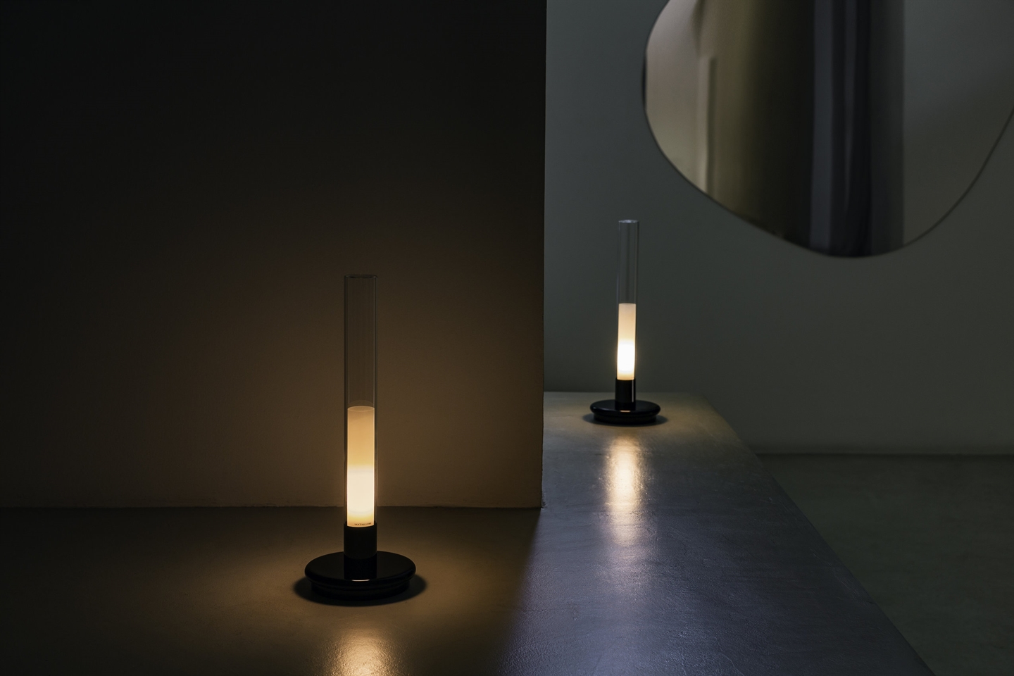 Santa & Cole Sylvestrina Akkulampe / Tischlampe – Entworfen von Enric Sòria und Jordi Garcés.