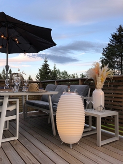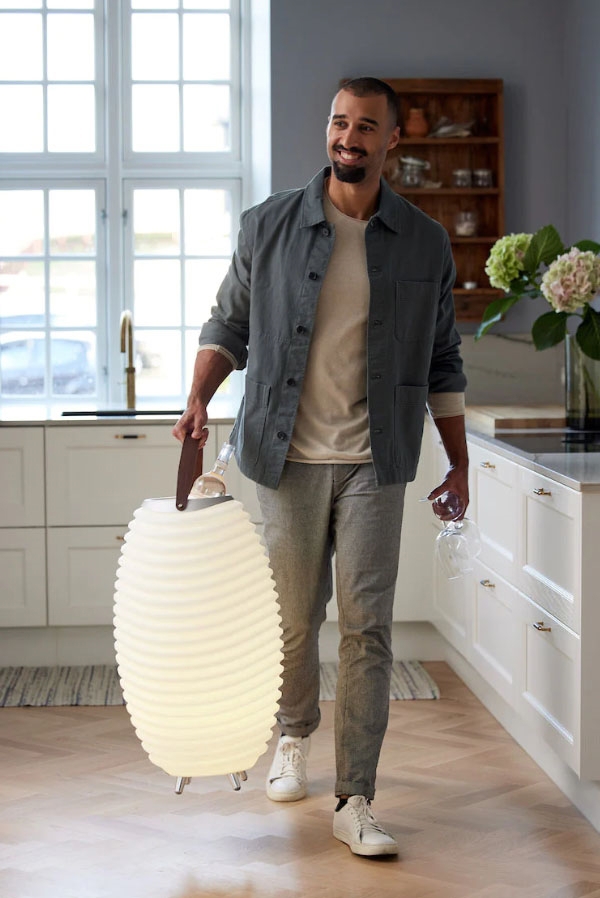 Kooduu Synergy S ist eine innovative Kombination aus LED-Lampe, Lautsprecher und Weinkühler. Die Lampe hat ein unglaublich smartes Design, das überallhin mitgenommen werden kann, da sie batteriebetrieben ist. Die Synergy Lampe hat ein warmes Licht, das eine gemütliche Atmosphäre schafft.