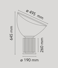 Flos Taccia Tischleuchte entworfen von Achille & Pier Giacomo Castiglioni im bekannten und klassischen Design.
