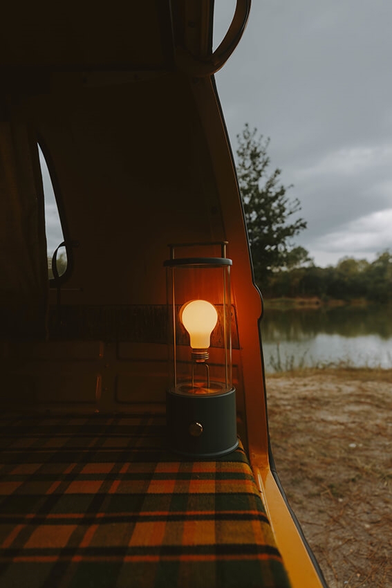 The Muse ist eine tragbare Tischleuchte, die leicht überallhin mitgenommen werden kann. Sie vereint klassische Laternenästhetik mit hochmoderner Technologie.