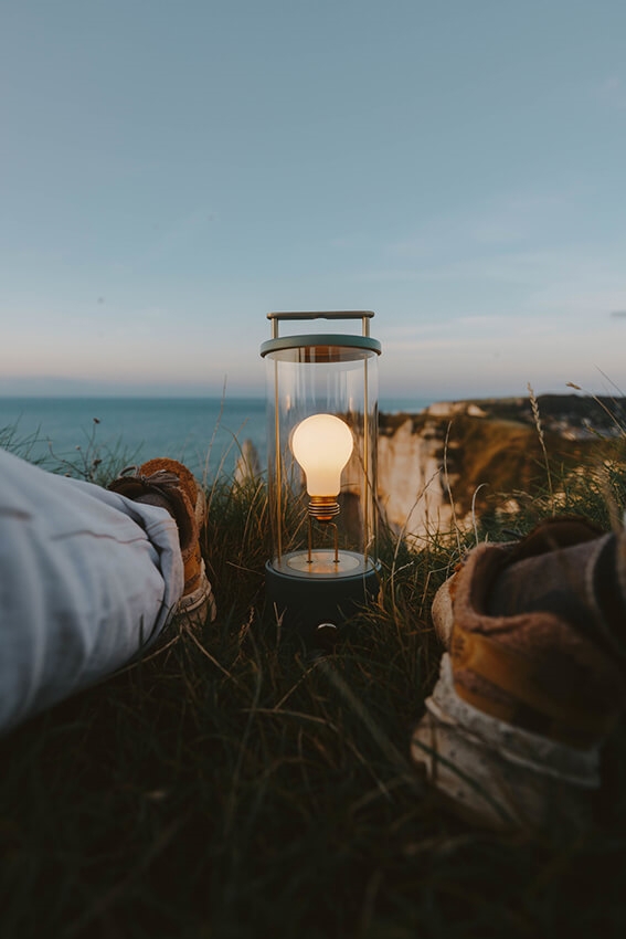 The Muse ist eine tragbare Tischleuchte, die leicht überallhin mitgenommen werden kann. Sie vereint klassische Laternenästhetik mit hochmoderner Technologie.