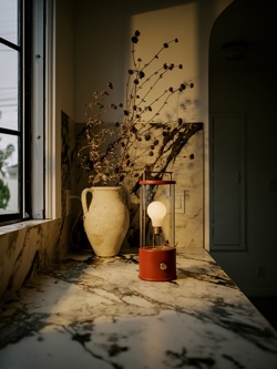 The Muse ist eine tragbare Tischleuchte, die leicht überallhin mitgenommen werden kann. Sie vereint klassische Laternenästhetik mit hochmoderner Technologie.
