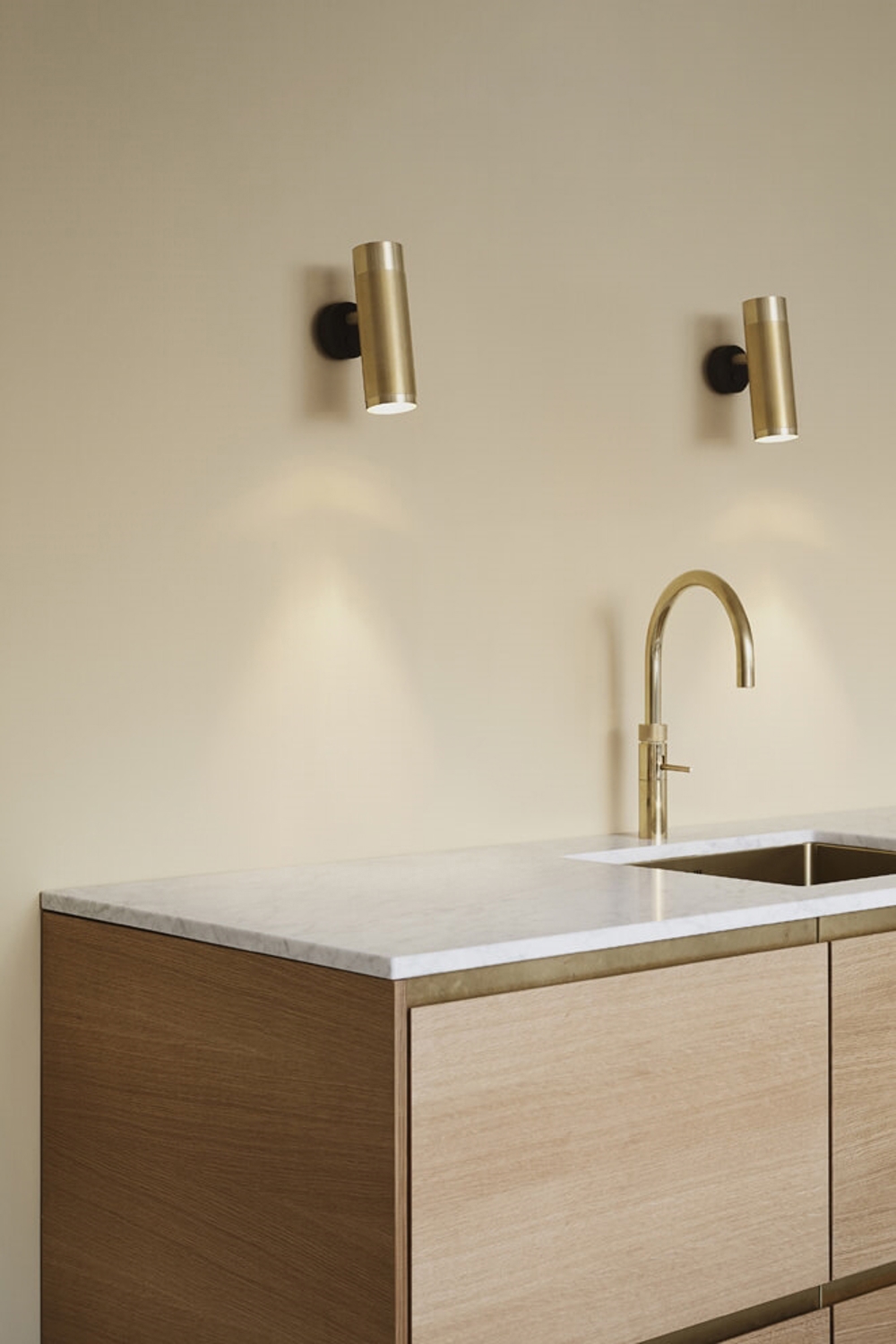 Schaffen Sie Atmosphäre mit einer durchdachten Wandbeleuchtung. Die elegante Patrone-Wandleuchte mit ihrem minimalistischen Design aus massivem Messing fügt sich gut in jeden Raum ein - sowohl in moderne als auch klassische Interieurs. Die Wandleuchte strahlt ein weiches, angenehmes nach unten gerichtetes Licht aus und eignet sich gut als z.B. Beleuchtung im Eingangsbereich.